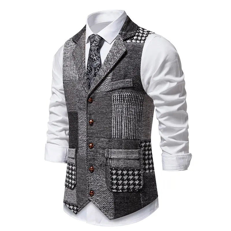 Adaptez votre style avec le gilet a carreaux sans manche homme costume gris