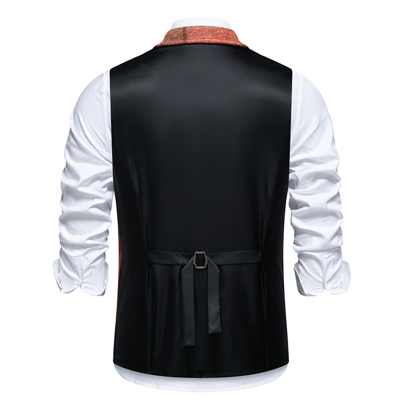 Ce gilet a carreaux sans manche homme costume rouge et marron est l’accessoire idéal pour ceux qui veulent adopter un style sophistiqué avec une touche contemporaine. Confectionné avec minutie, ce vêtement incarne l’alliance parfaite entre l’élégance d’un costume et la modernité des motifs à carreaux qui sont en vogue.