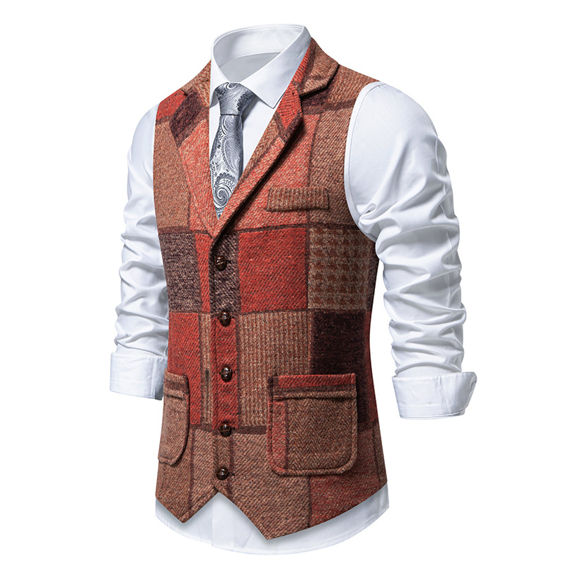 Polyvalence du gilet a carreaux sans manche homme costume rouge et marron