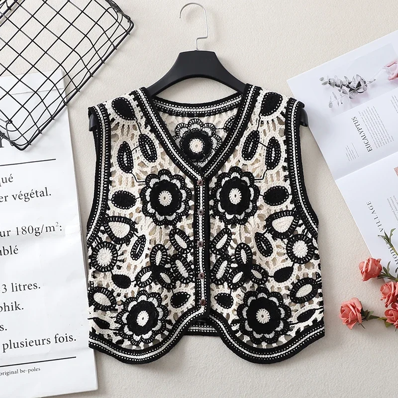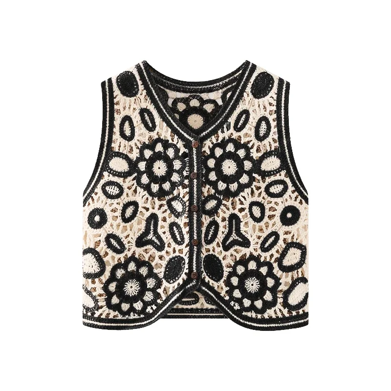 Le gilet crochet sans manche motif floral se distingue par son crochet finement travaillé, offrant une texture unique et captivante. Chaque pièce est confectionnée avec soin pour garantir une qualité exceptionnelle, faisant de ce vêtement un incontournable des garde-robes modernes.