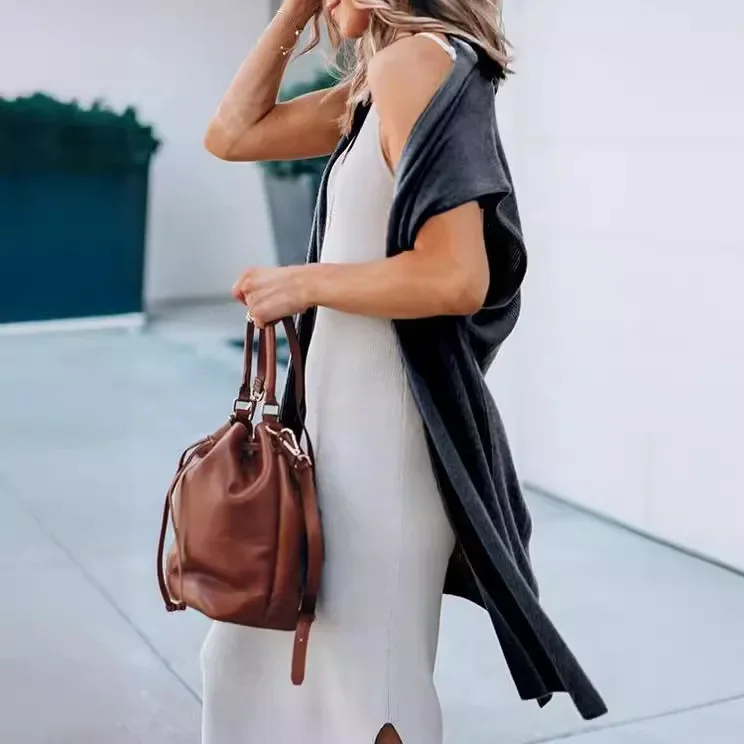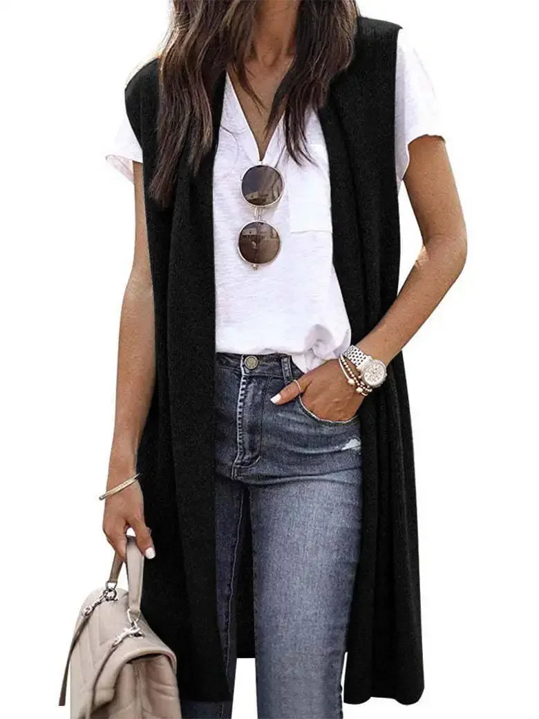 Gilet long femme sans manche décontracté pour un style élégant