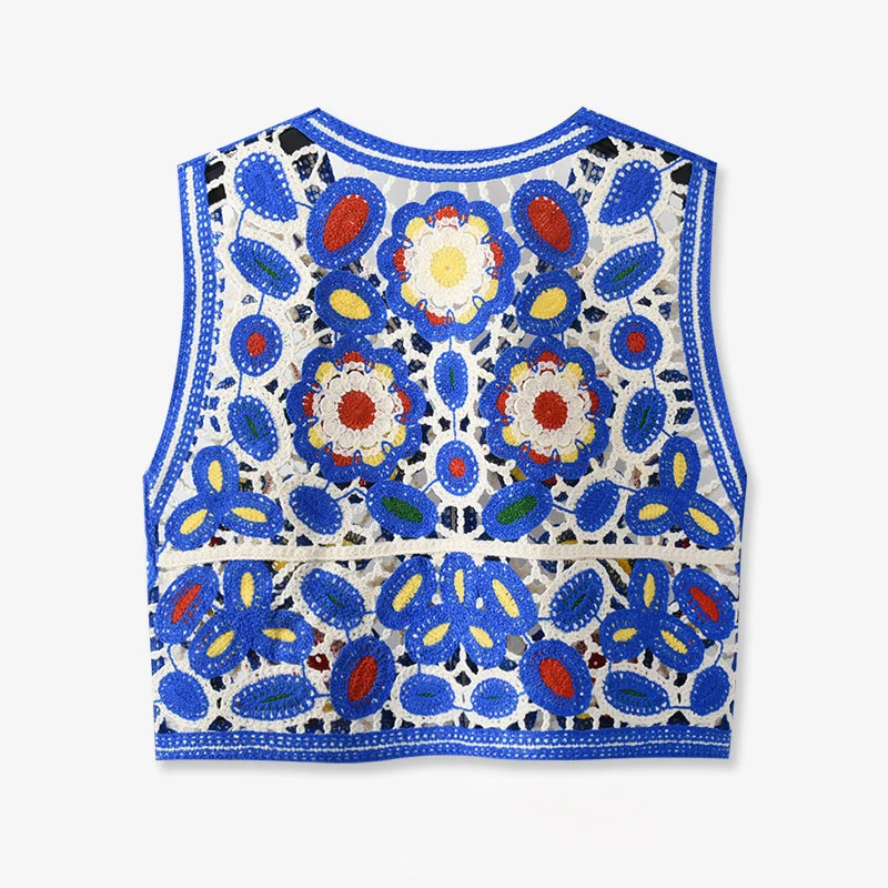 Découvrez notre Gilet sans manche bleu floral pour un style unique