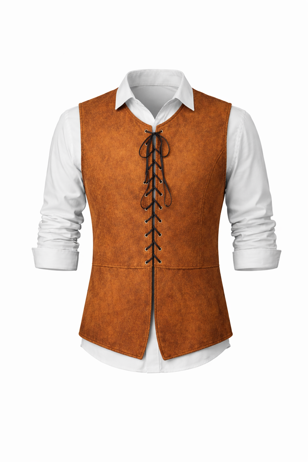 Affirmez votre élégance avec le gilet sans manche en daim médiéval pour homme marron clair