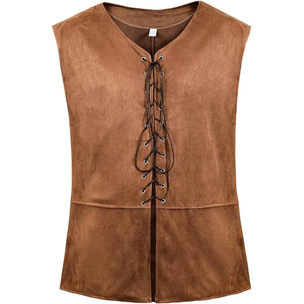 Découvrez le charme du gilet sans manche en daim médiéval pour homme marron clair