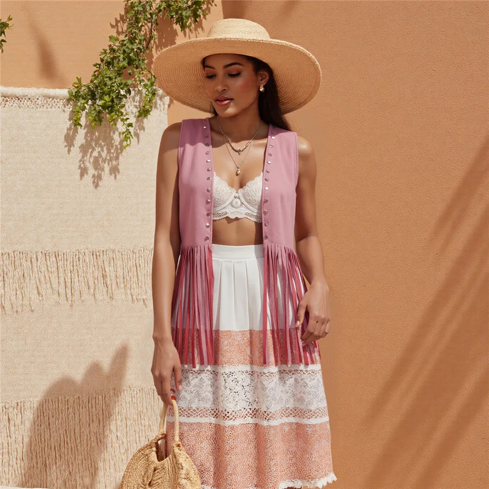 Avec notre gilet sans manche à franges, adoptez un look sur-mesure qui vous mettra en valeur. Cette diversité de tailles garantit que chaque femme peut exprimer sa personnalité unique tout en profitant du confort et du charme vintage du design à franges.