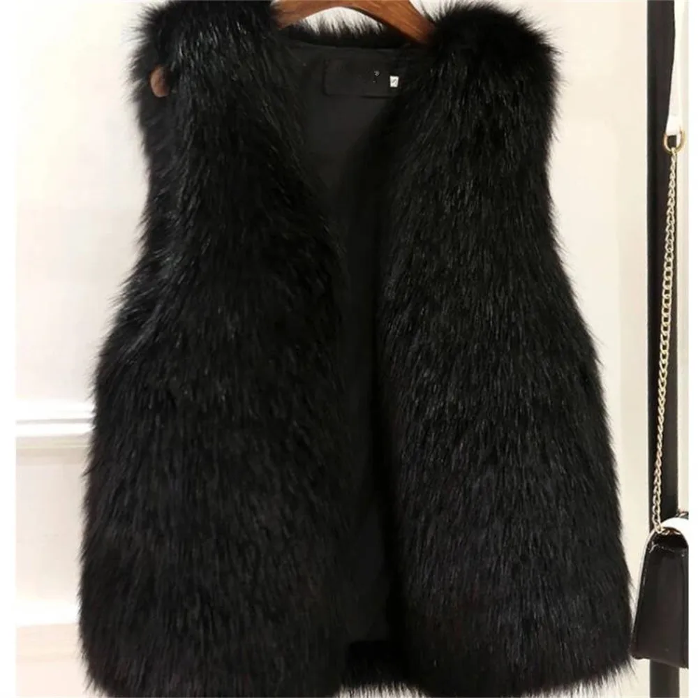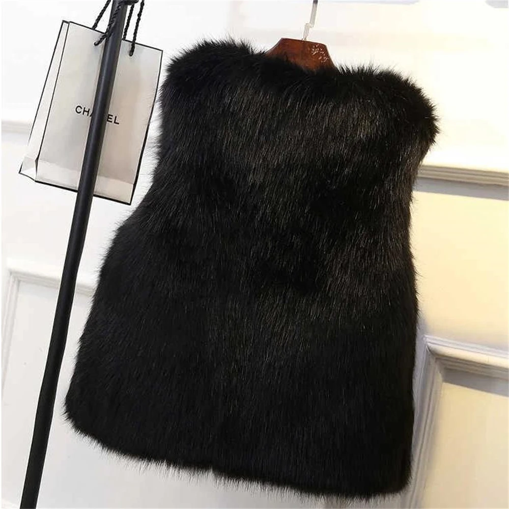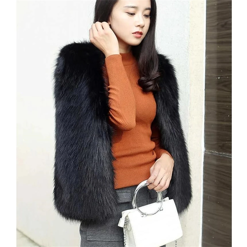 Gilet sans manche femme en fourrure imitation renard noir : une touche de luxe