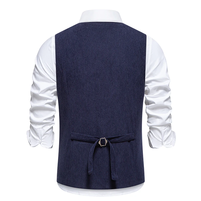 Découvrez le gilet sans manche homme costume velours côtelé bleu pour un style unique