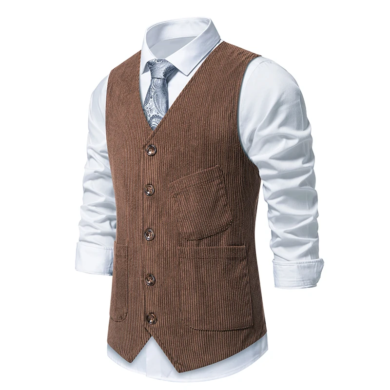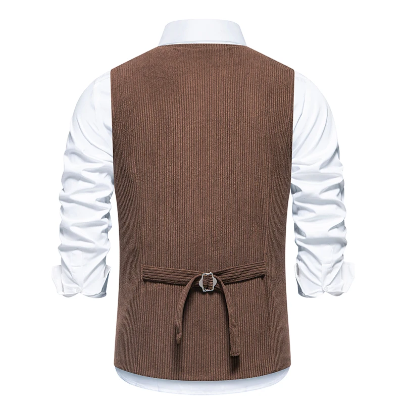 Découvrez le gilet sans manche homme costume velours côtelé marron pour un style unique et élégant.