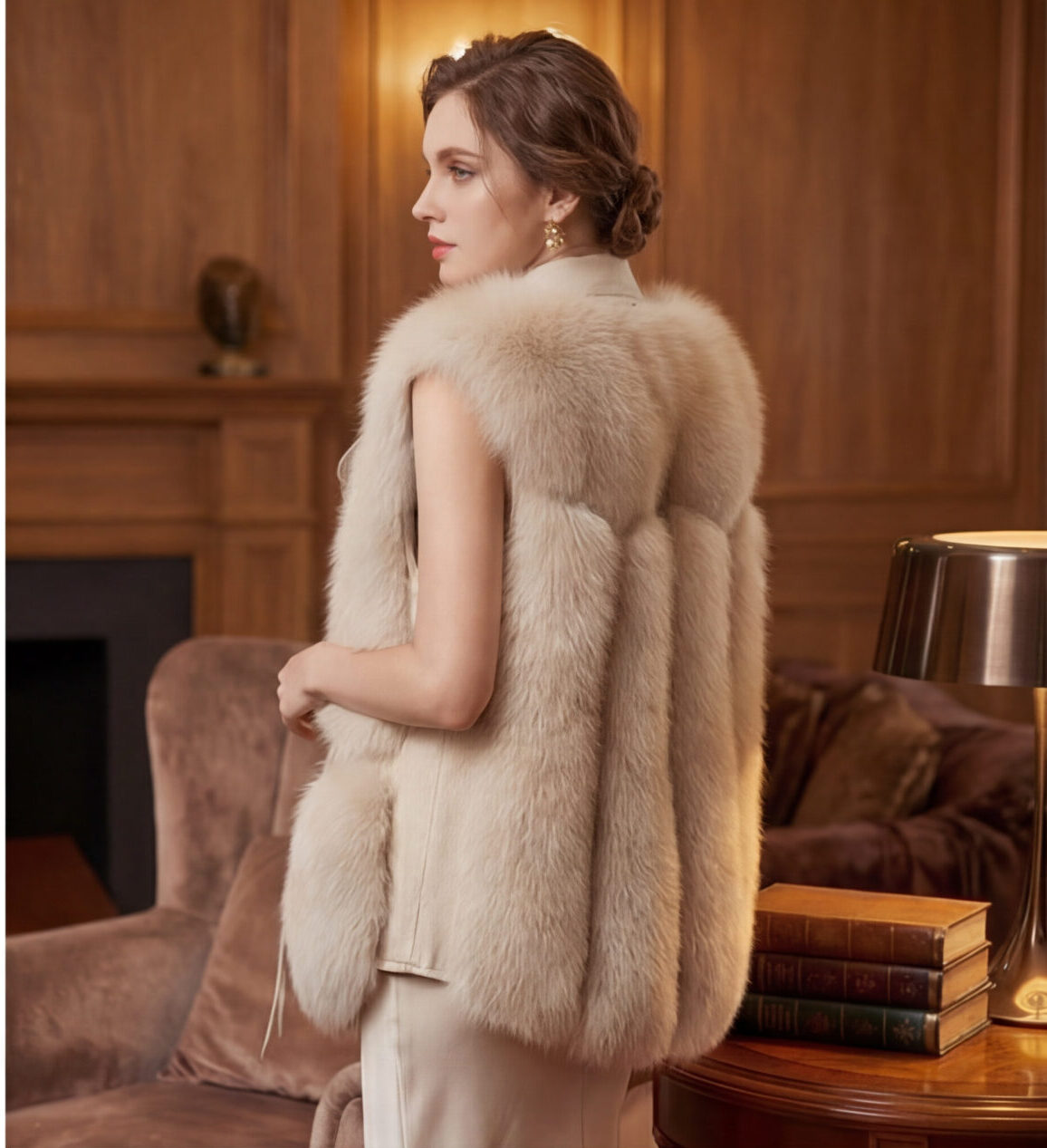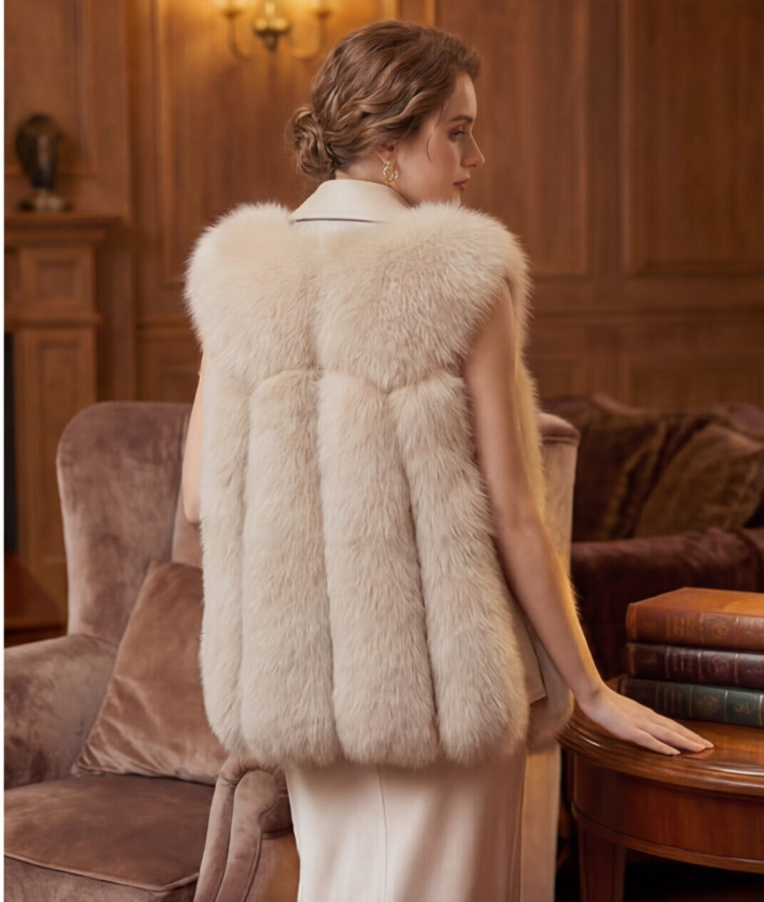 Le gilet sans manches court en imitation fourrure pour femme permet de rehausser votre silhouette grâce à sa coupe ajustée et moderne. Son design intemporel s’harmonise parfaitement avec des vêtements de différentes coupes, que ce soit avec un jean slim ou une jupe élégante. Chaque détail a été pensé pour sublimer la féminité et offrir une allure élégante.