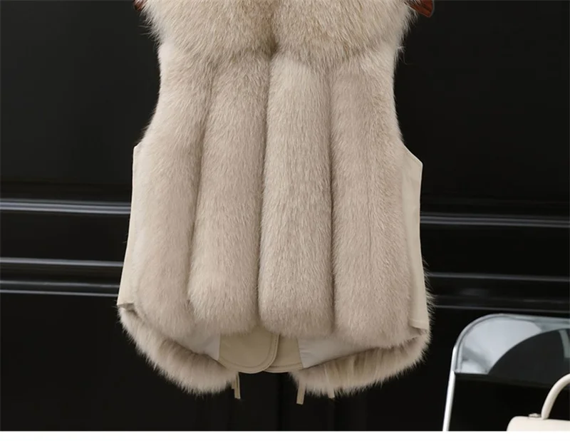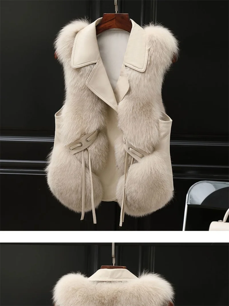 Gilet sans manches en fausse fourrure de renard crème pour un style unique