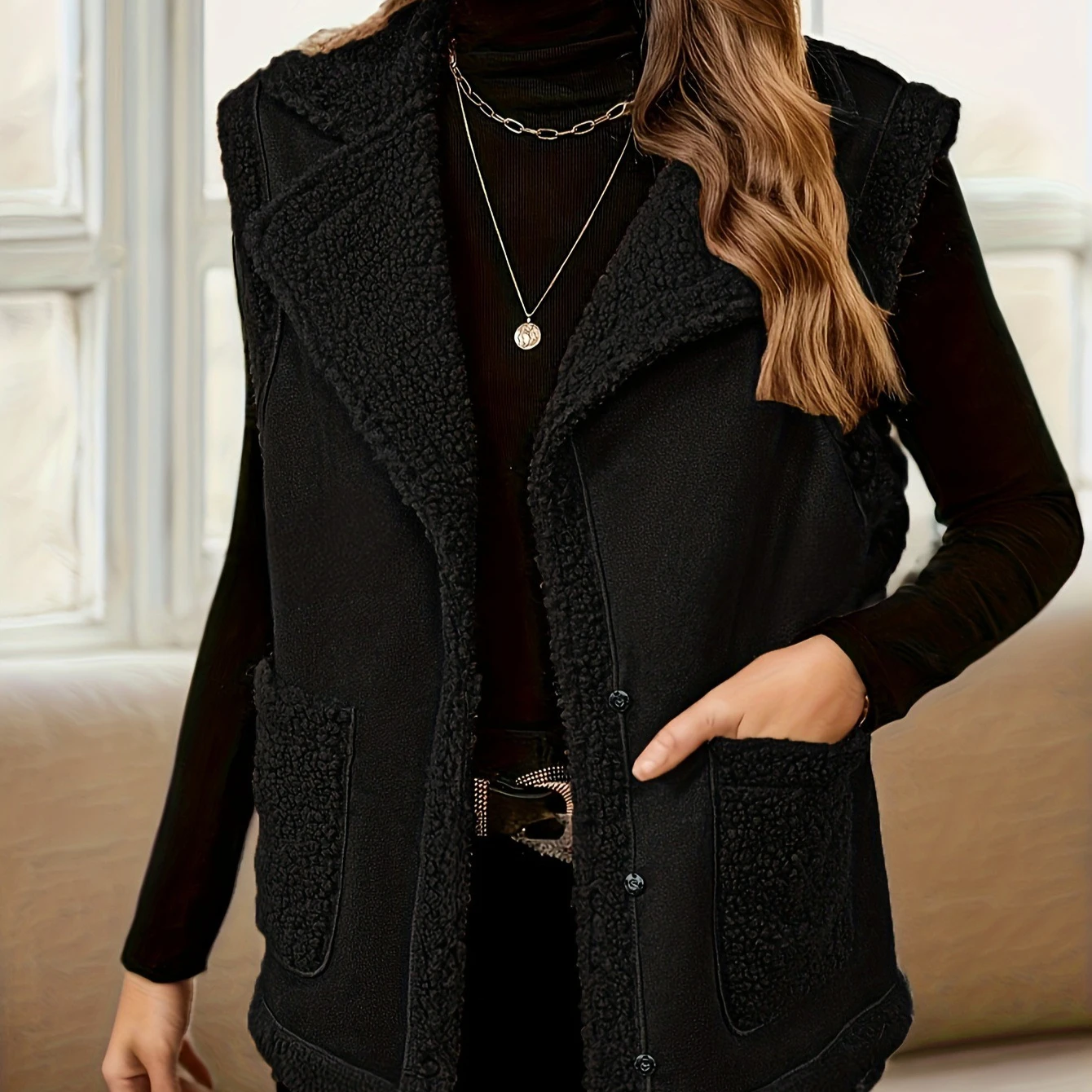 Confectionné en polyester, le long gilet sans manche élégant noir assure à la fois confort et durabilité. La texture douce et agréable au toucher en fait le compagnon idéal pour toutes les saisons, vous enveloppant dans une chaleur douce lors des journées plus fraîches.