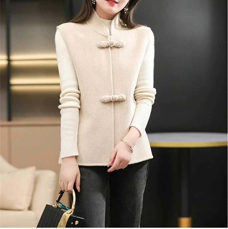 Polyvalent et stylé : Long gilet sans manche en laine pour femme col montant