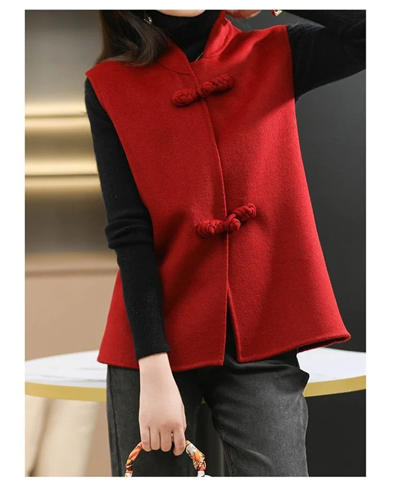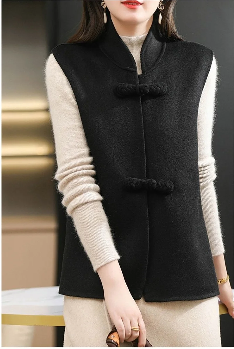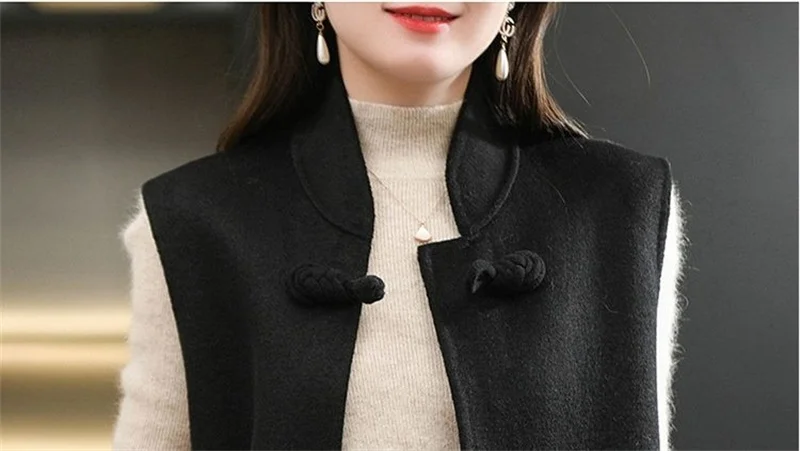 Long gilet sans manche en laine pour femme col montant : élégance et confort