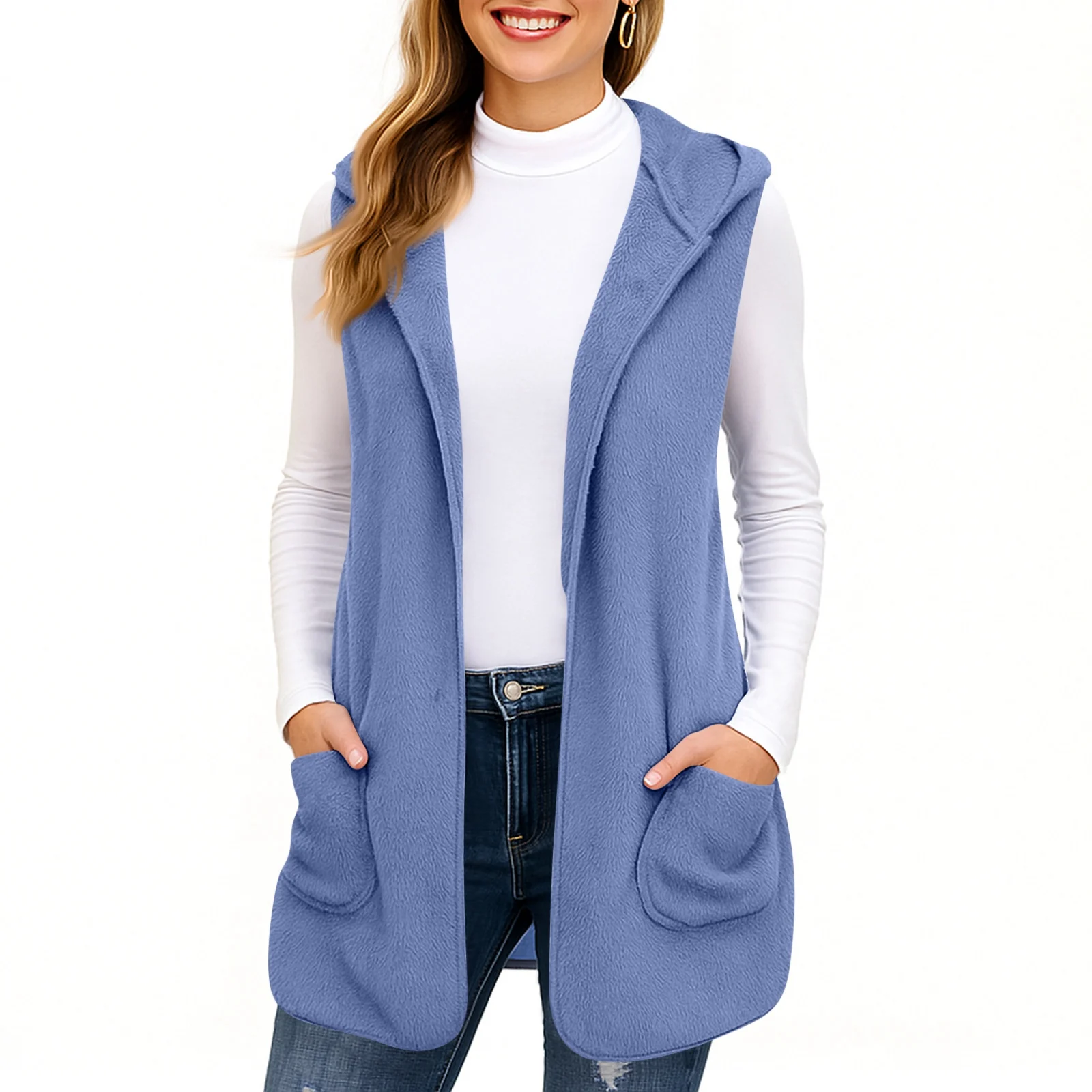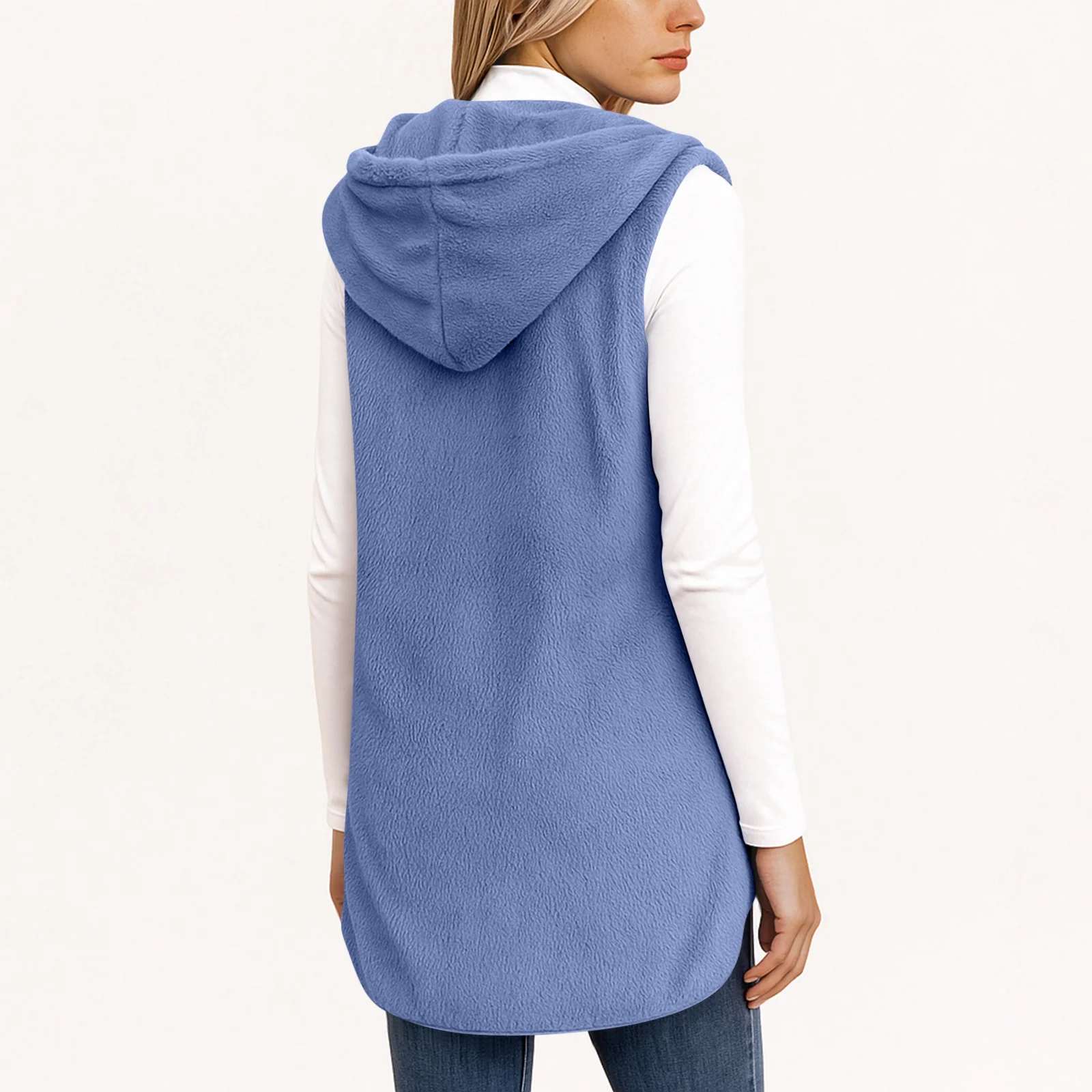 Long gilet sans manche polaire pour femme bleu pour un style unique