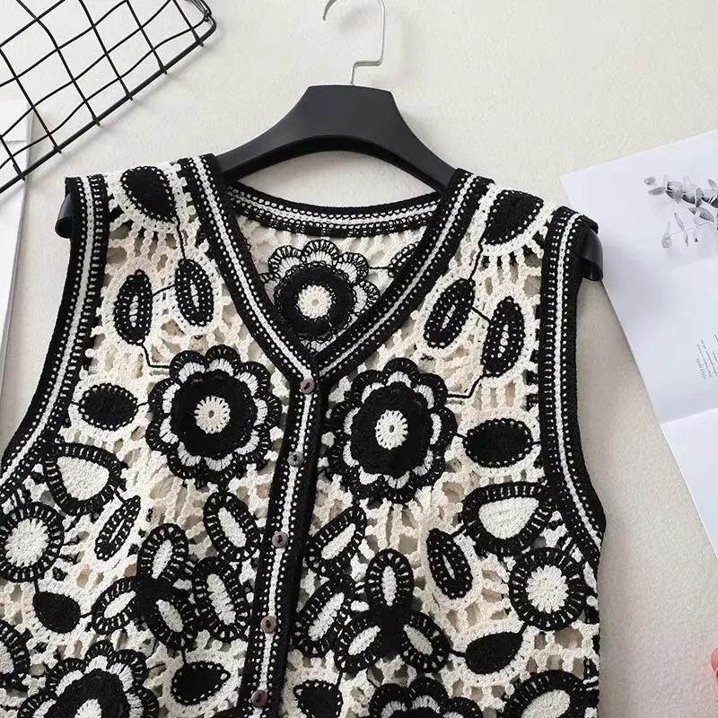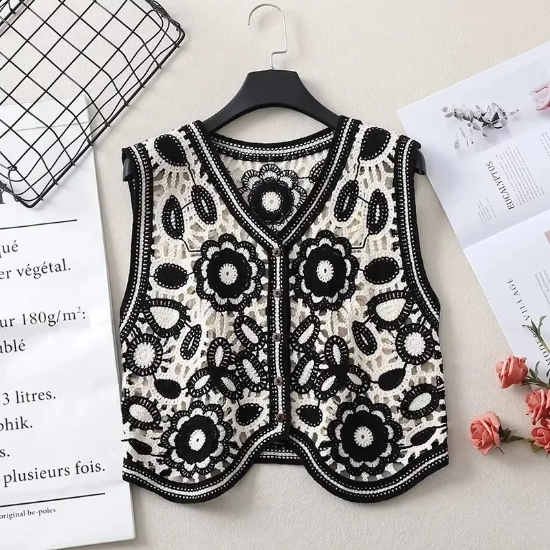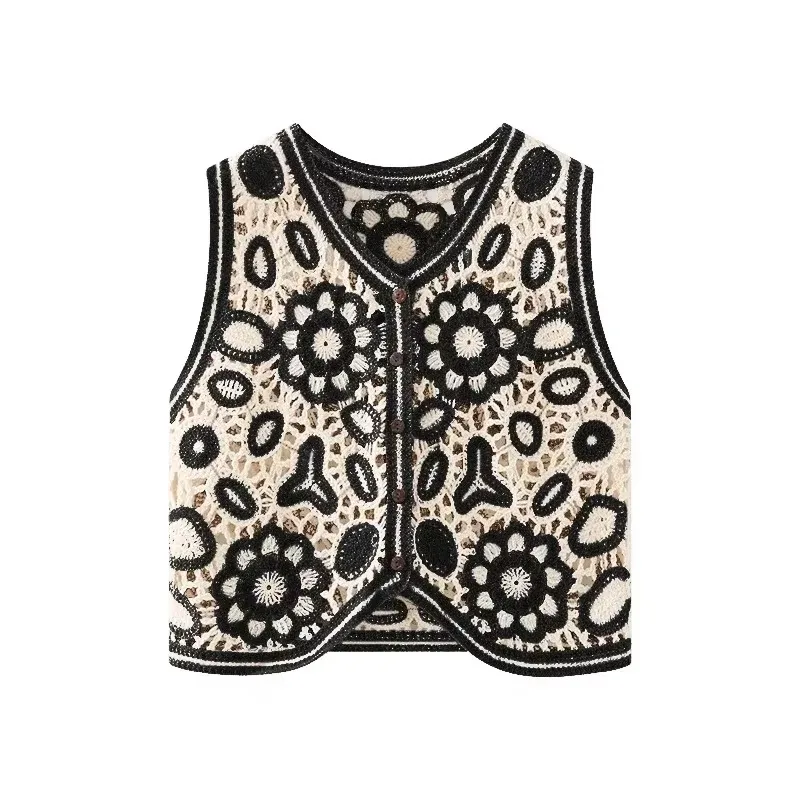 Conçu pour les femmes à la recherche d’originalité, le petit gilet sans manche beige et noir réunit à la perfection élégance et confort. Sa coupe sans manches facilite vos mouvements tout en ajoutant une dimension esthétique à votre garde-robe automnale ou printanière.