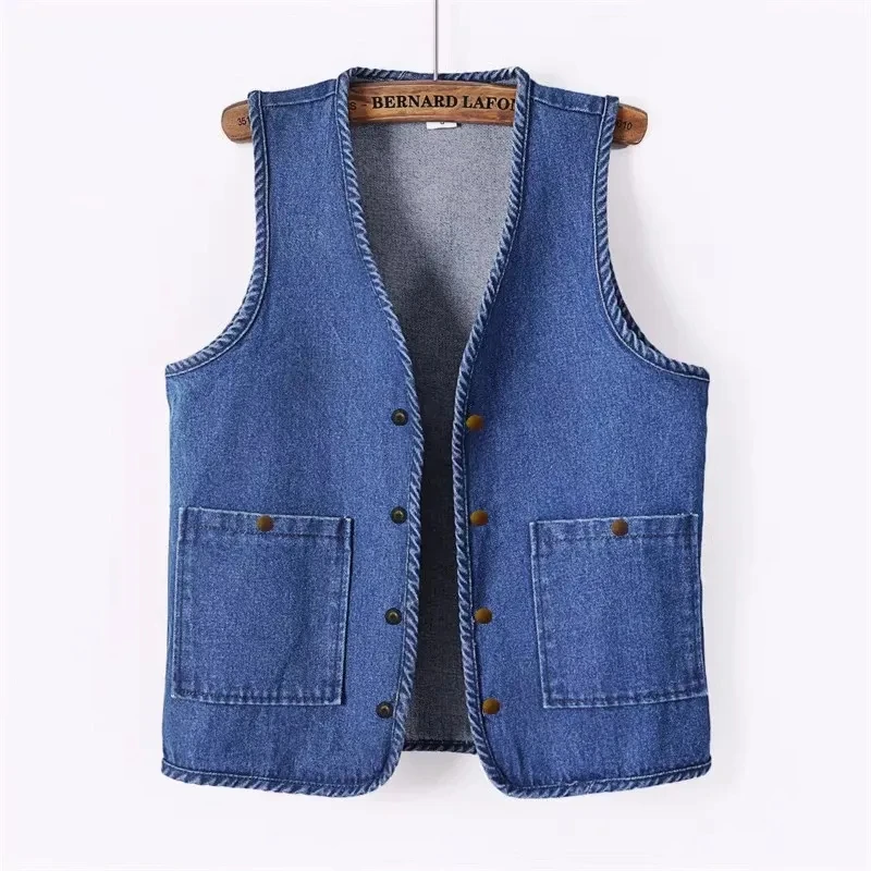 Petit gilet sans manche en jean vintage pour femme bleu clair